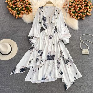 Cheap Dresses, Buy Quality Women’s Clothing Directly from China Suppliers:Wave point chiffon shirt collar dress posed long pleated skirt waist