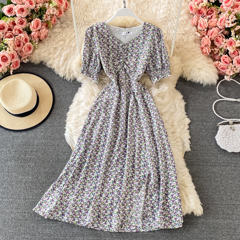 Cheap Dresses, Buy Quality Women’s Clothing Directly from China Suppliers:Floral chiffon dress in the summer of the new love to receive a word skirt waist super sweet fairy in the dress