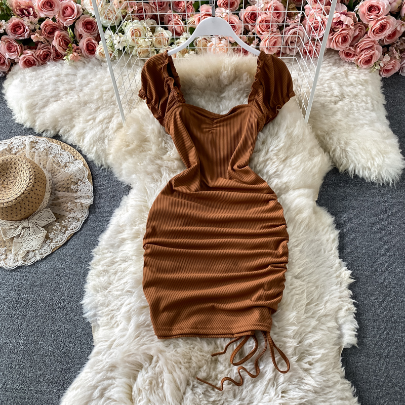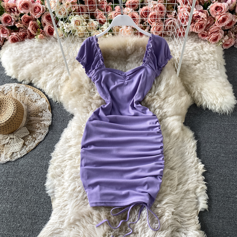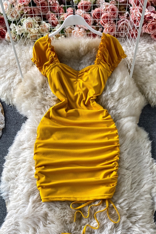 Cheap Dresses, Buy Quality Women’s Clothing Directly from China Suppliers:Tall waist square collar dress summer brim draw string cultivate one’s morality show thin package buttocks short skirts