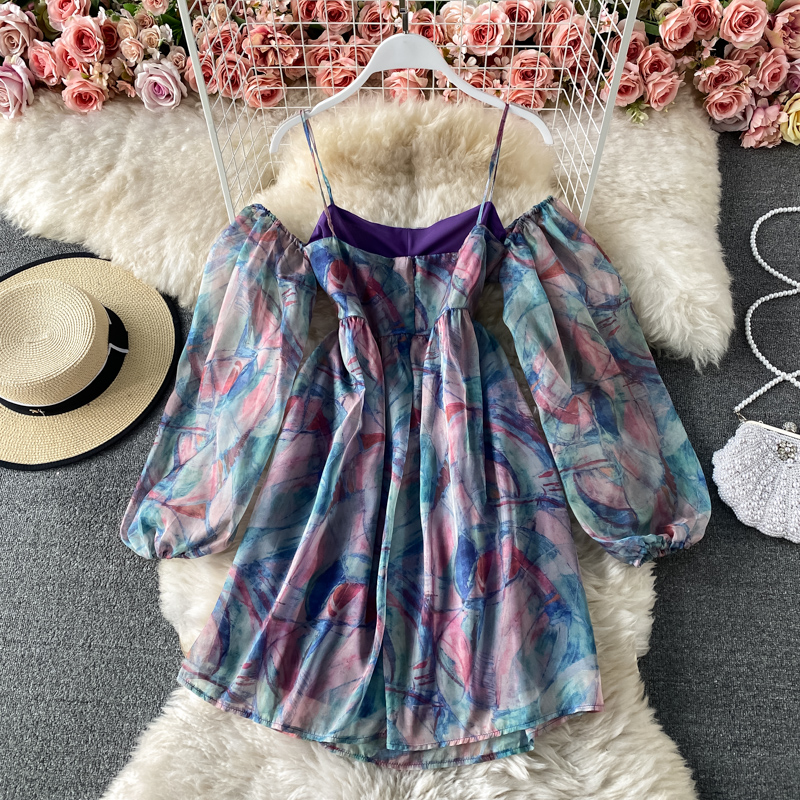 Cheap Dresses, Buy Quality Women’s Clothing Directly from China Suppliers:Seaside Vacation Sling Beach Dress Summer Lightly Mature Super Fairy Sweet off Shoulder off Shoulder Printed Dress