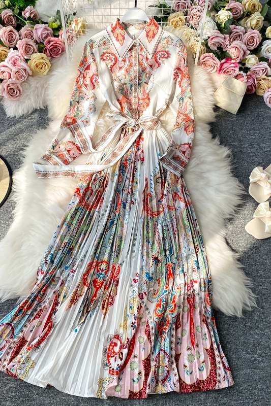 Cheap Dresses, Buy Quality Women’s Clothing Directly from China Suppliers:Early autumn French long skirt, positioning printing, waist is thin, ladies shirt skirt, big pleated dress, long sleeves