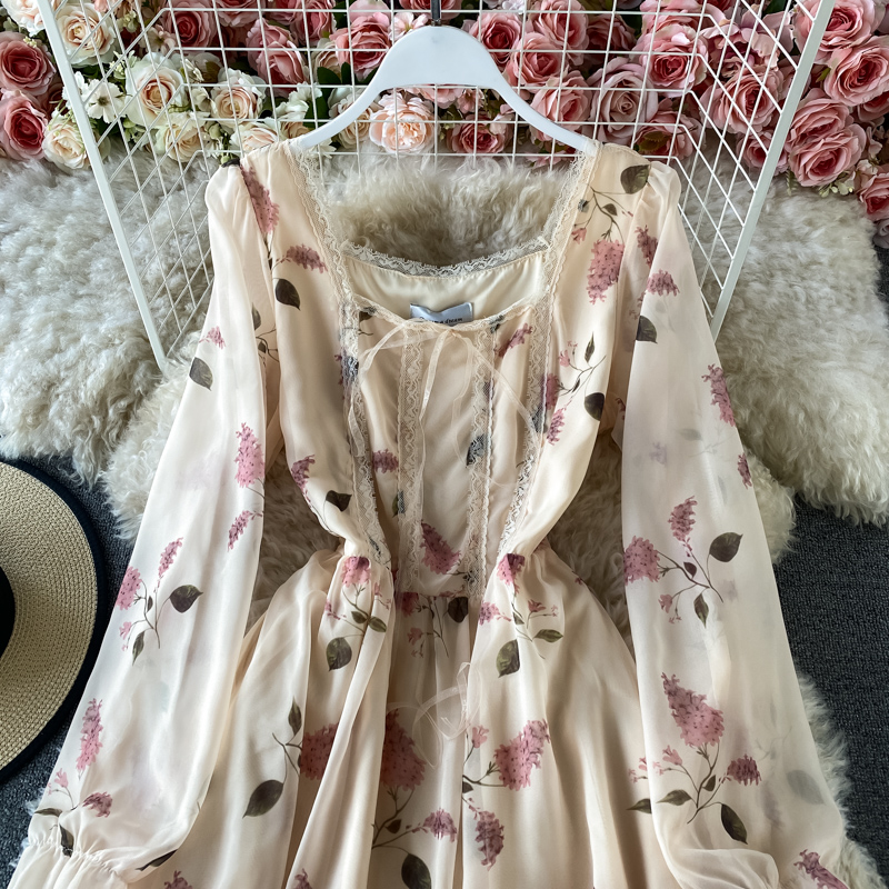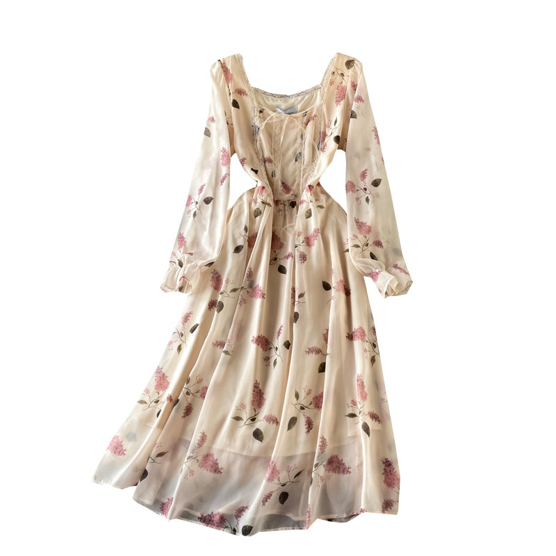 Cheap Dresses, Buy Quality Women’s Clothing Directly from China Suppliers:New Square Collar Elegant Chiffon Printed Elegant High Waist Mid Length Bohemian Pastoral Style Dress
