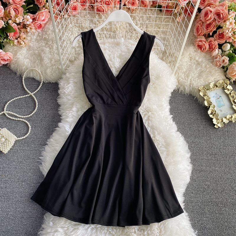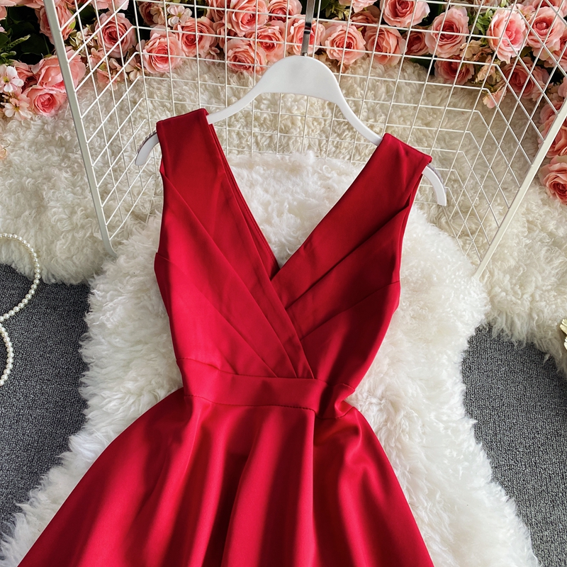 Evening Dress New Elegant Slimming Small V-neck Dress Sleeveless Socialite Dress Host Short Dress