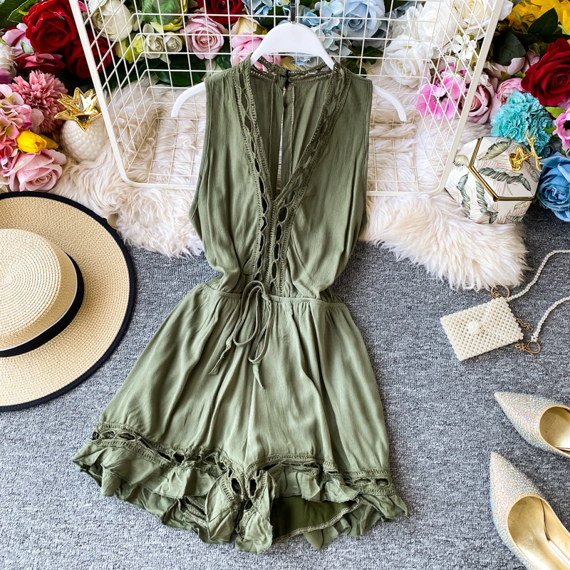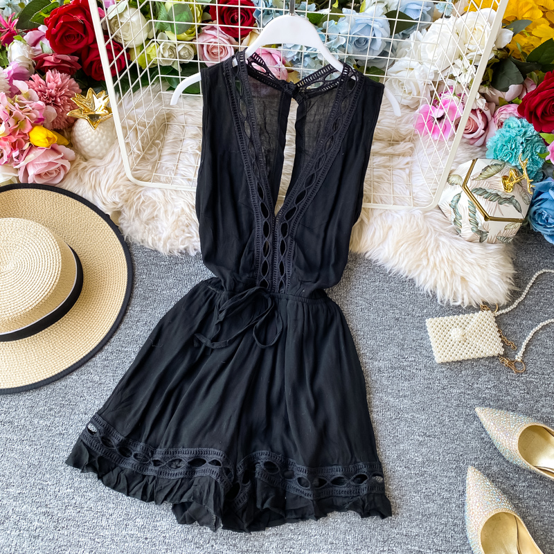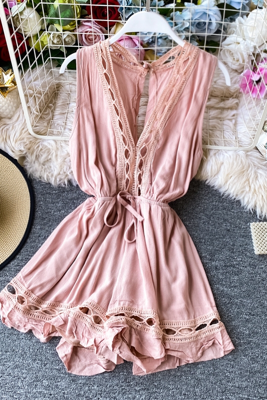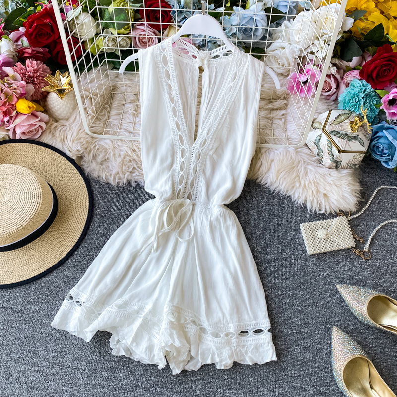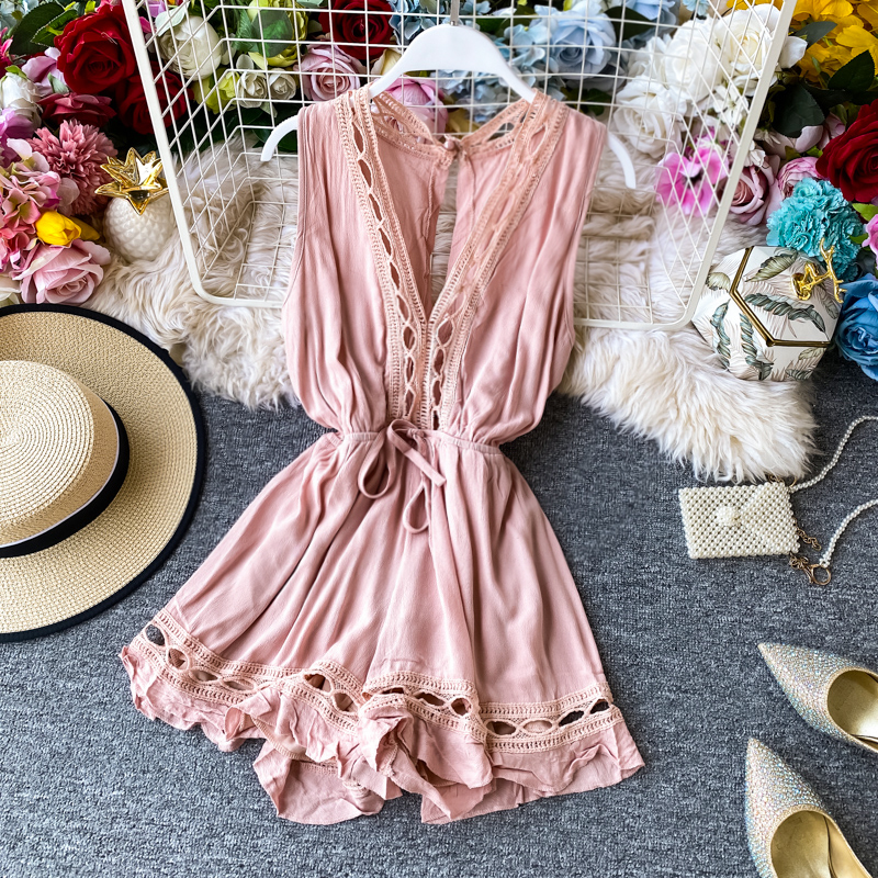 Cheap Dresses, Buy Quality Women’s Clothing Directly from China Suppliers:Summer New Korean Style Sweet Elegant Lace Flounce Trim Lace up V neck Jumpsuit High Waist Wide Leg Jumpsuit Shorts