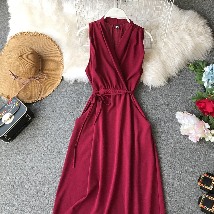 Cheap Dresses, Buy Quality Women’s Clothing Directly from China Suppliers:Women’s Sleeveless Dress Summer New Korean Style Slimming Chiffon Mid Length Slim Temperament V neck Solid Color Simple