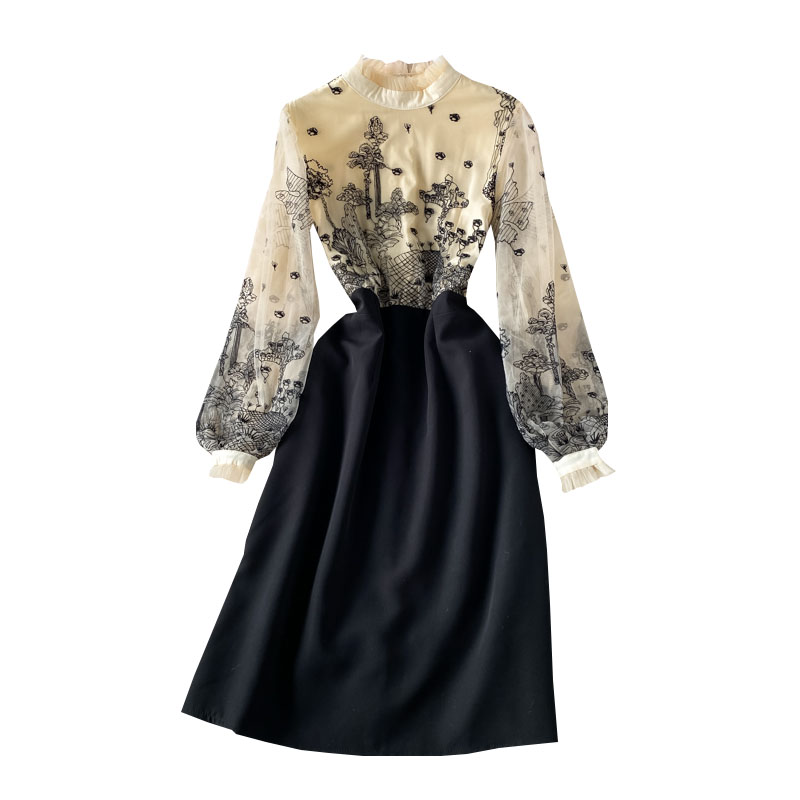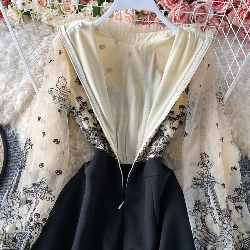 Cheap Dresses, Buy Quality Women’s Clothing Directly from China Suppliers:spring elegant temperament wood ear stand collar stitching embroidered mesh fake two piece waist slimming a line dress