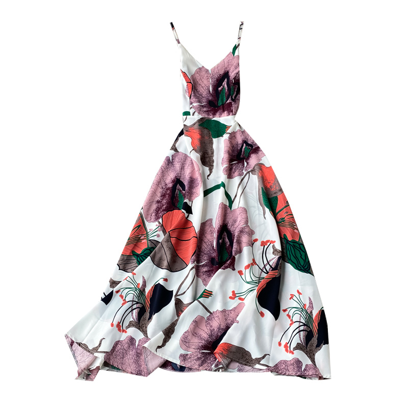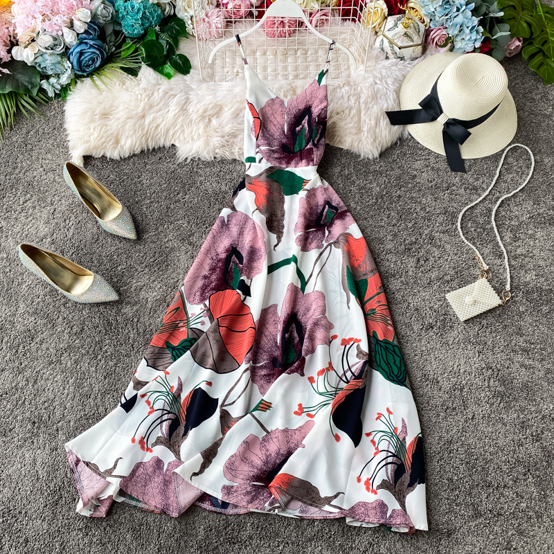 Cheap Dresses, Buy Quality Women’s Clothing Directly from China Suppliers:Seaside Vacation Style Chiffon Dress Women’s Floral V neck Beach Dress Sleeveless Swing Seaside Vacation Long Dress