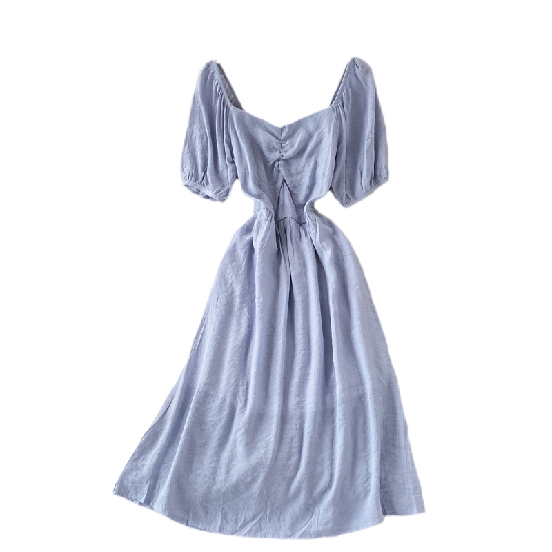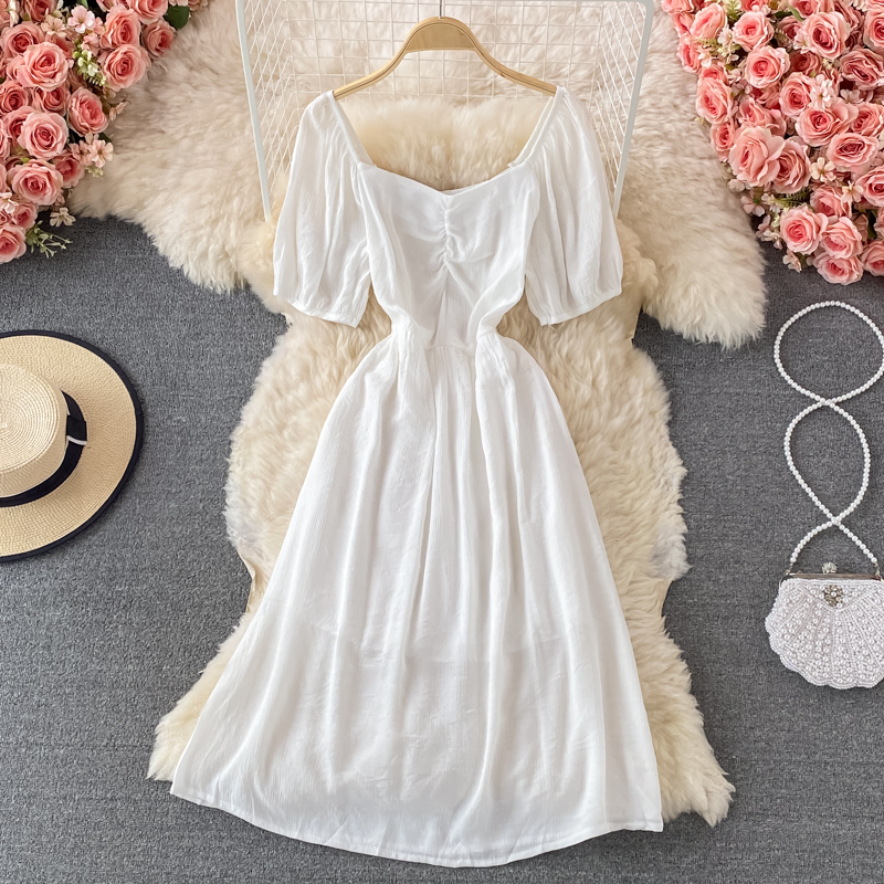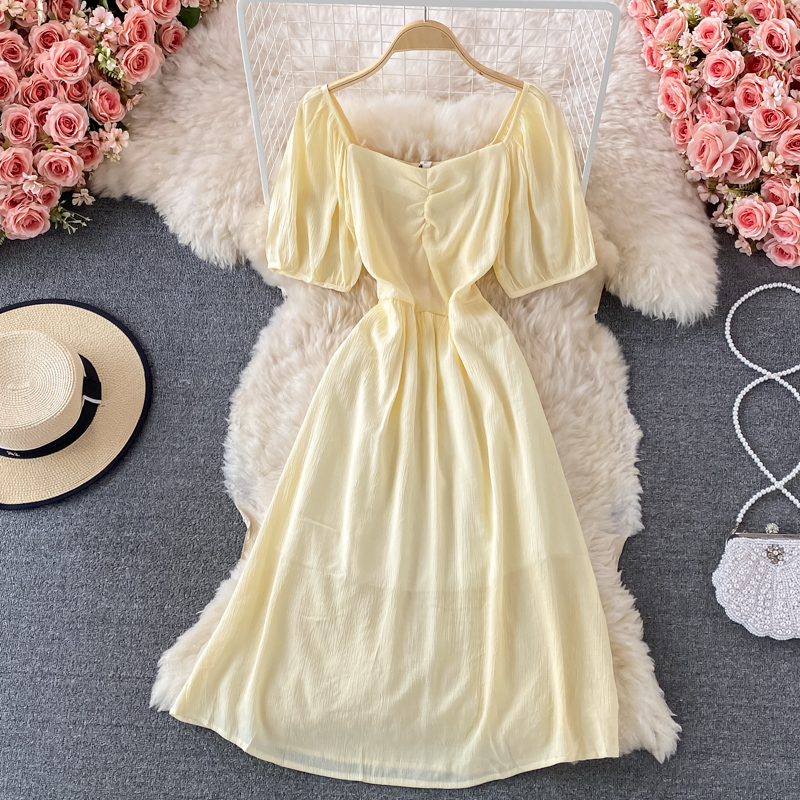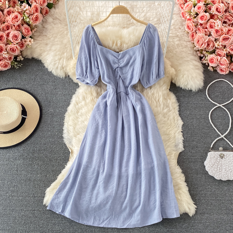 Cheap Dresses, Buy Quality Women’s Clothing Directly from China Suppliers:Square Collar Puff Sleeve Dress Summer New French Style Gentle Small Waist Tight Temperament Mid Length Skirt