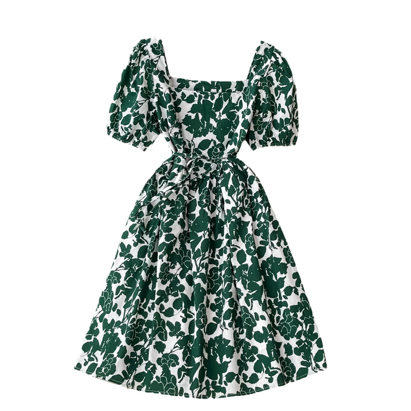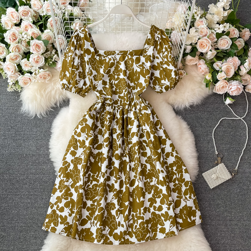 Cheap Dresses, Buy Quality Women’s Clothing Directly from China Suppliers:Korean Summer New Small Square Collar Floral Elegant Retro Loose Slimming Puff Sleeve Dress for Women