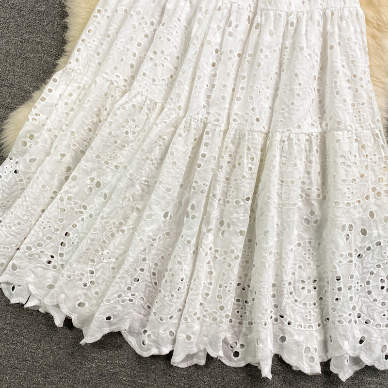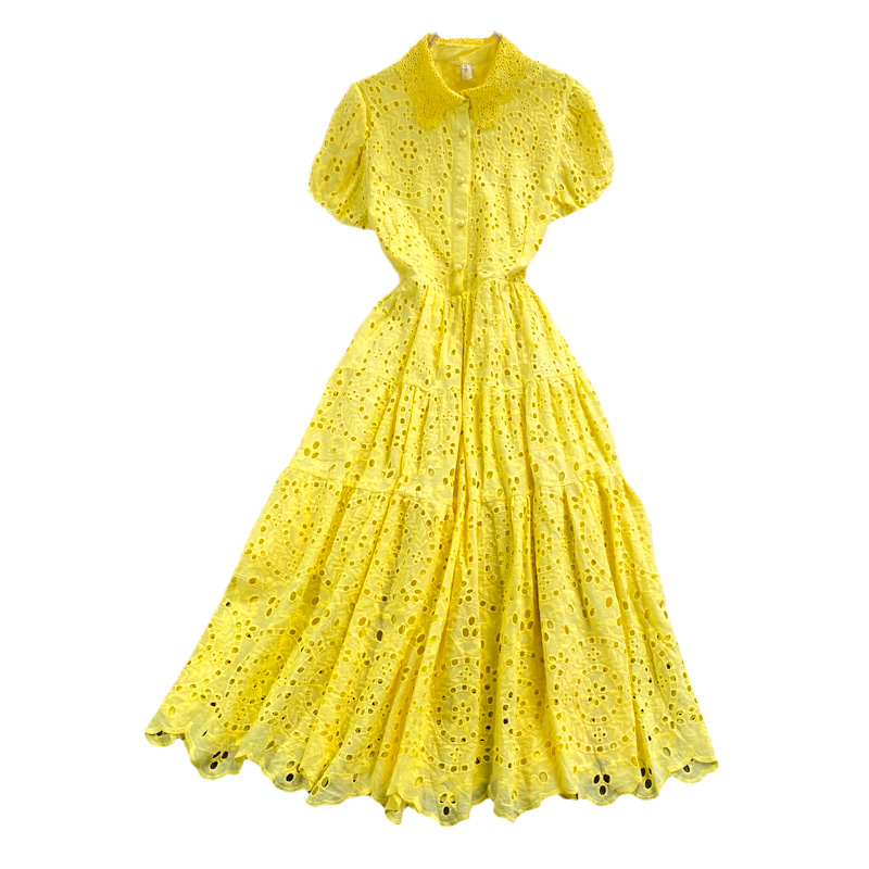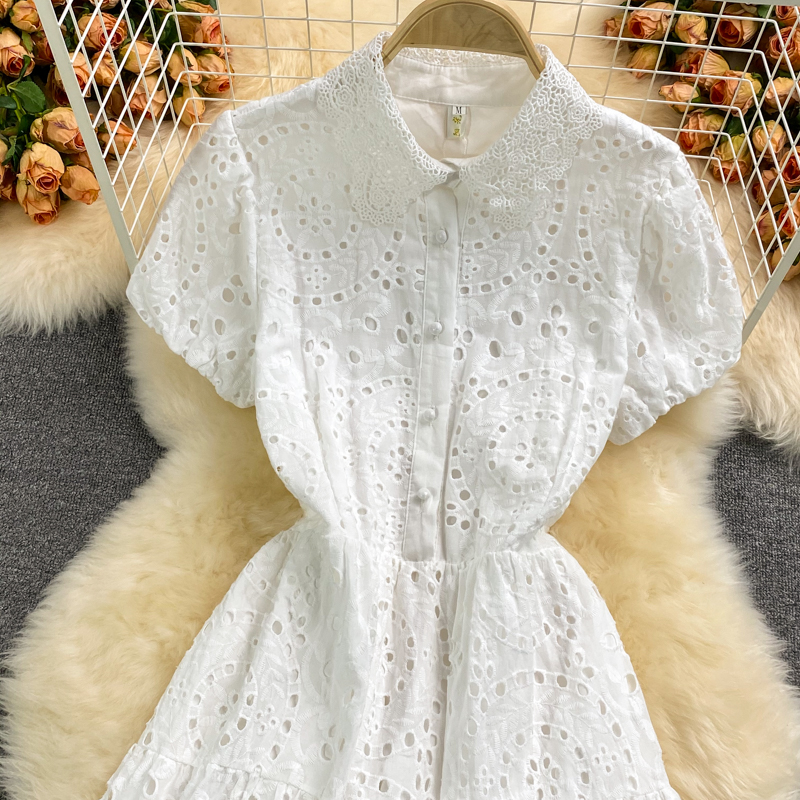 Cheap Dresses, Buy Quality Women’s Clothing Directly from China Suppliers:European Station Hollow Water Soluble Lace Lapel Dress Short Sleeve Summer Waist Controlled Large Hem A line Dress Long Skirt