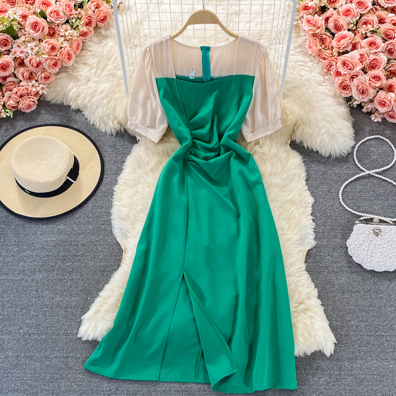 Cheap Dresses, Buy Quality Women’s Clothing Directly from China Suppliers:French Style Slim Fit Assorted Colors Dress Summer Women’s Mid Length Gentle Square Collar Split Temperament Long Dress New