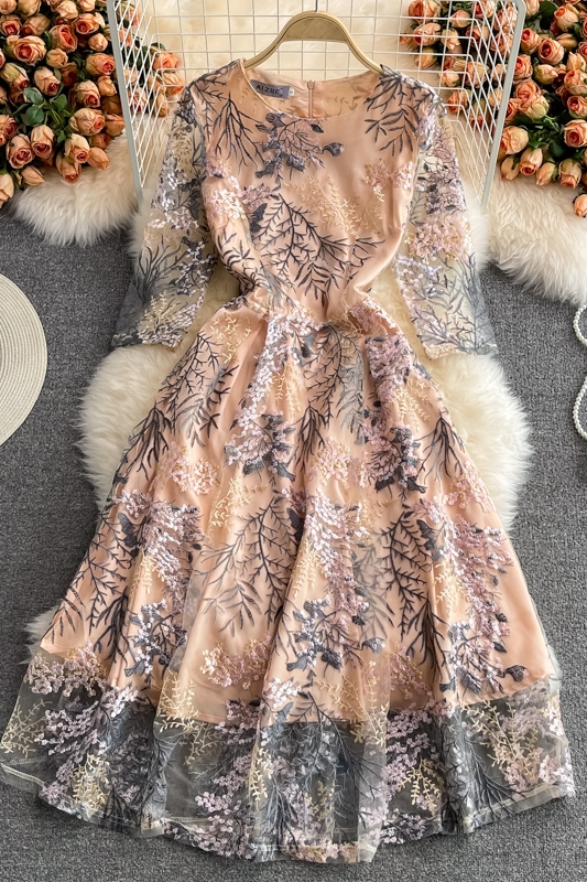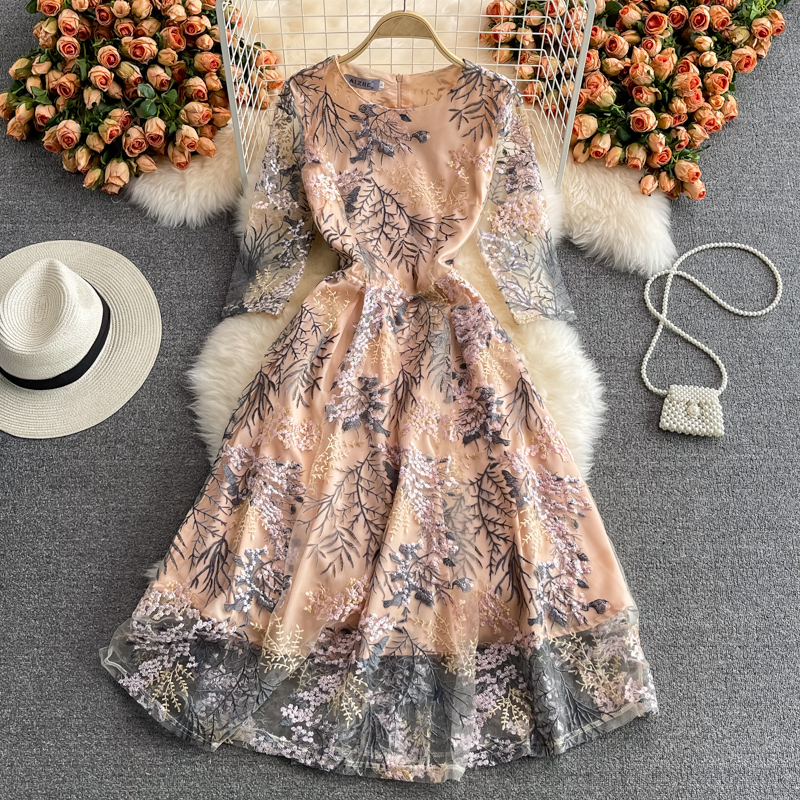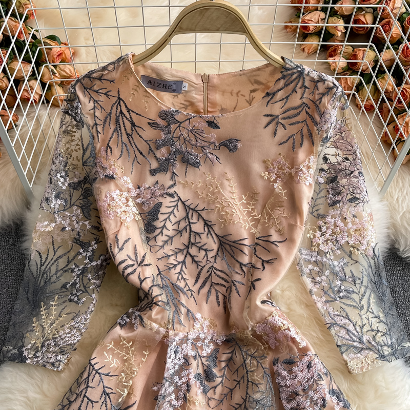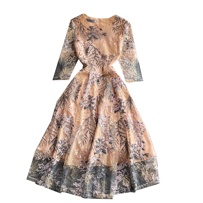 Cheap Dresses, Buy Quality Women’s Clothing Directly from China Suppliers:Summer High End Retro Crew Neck Embroidered Waist Slimming Lace Dress Elegant Graceful Swing Long Dress