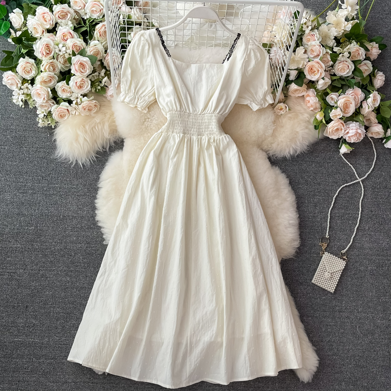 Cheap Dresses, Buy Quality Women’s Clothing Directly from China Suppliers:French Style Retro Square Collar Bow Puff Sleeve Dress Summer New Girl Age Reducing Sweet Large Swing Dress