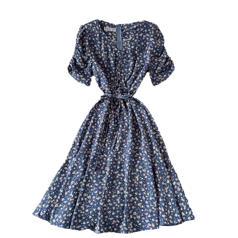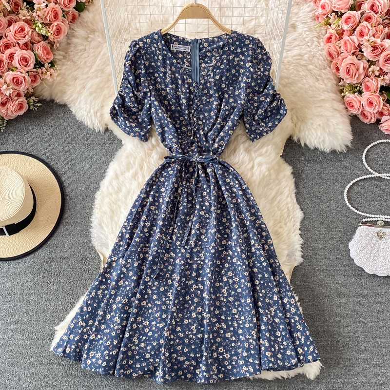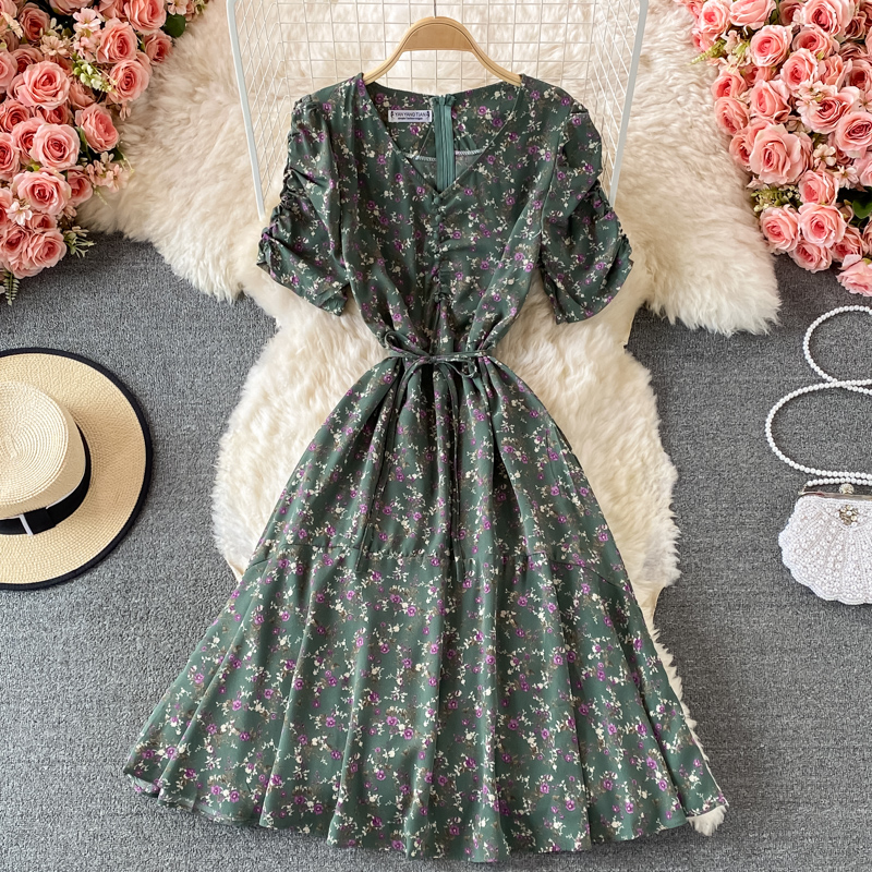 Cheap Dresses, Buy Quality Women’s Clothing Directly from China Suppliers:Summer Korean New Slimming Fitted Waist Sweet Puff Sleeve Gentle First Love V neck Floral Chiffon Dress