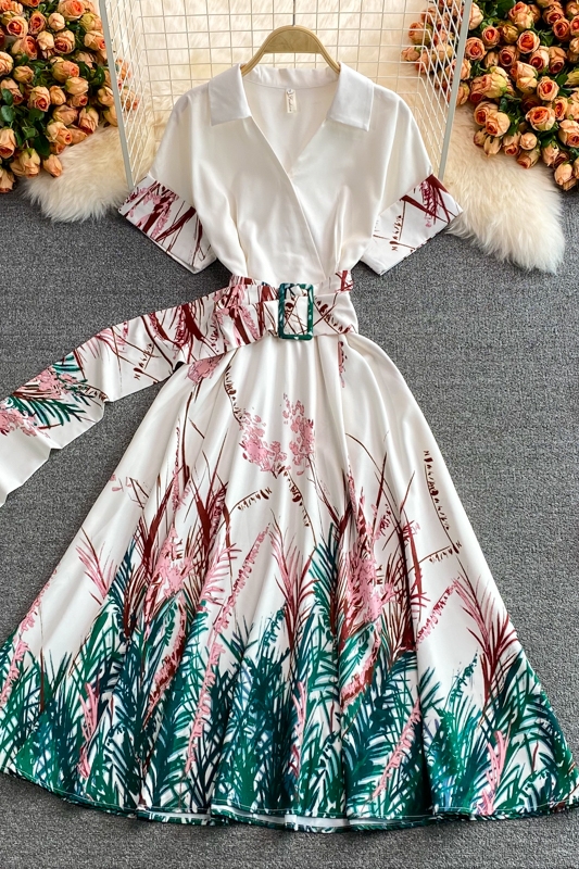 Cheap Dresses, Buy Quality Women’s Clothing Directly from China Suppliers:new spring and summer high end short sleeved elegant temperament retro print large length skirt V neck dress