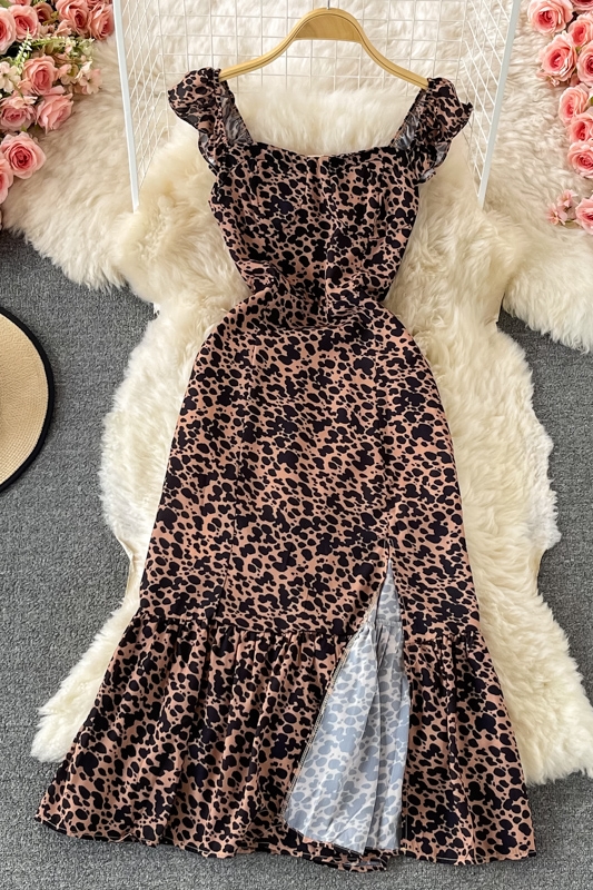 Cheap Dresses, Buy Quality Women’s Clothing Directly from China Suppliers:Leopard Print Dress Sleeveless Summer New Square Collar Backless Waist Trimming Slimming Slit French Halter Skirt