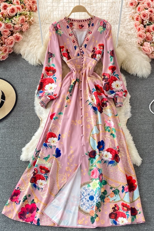 Cheap Dresses, Buy Quality Women’s Clothing Directly from China Suppliers:Spring and Autumn Retro European American Style V neck Long Sleeve Waist Slimming Dress Elegant Graceful Swing Long Dress
