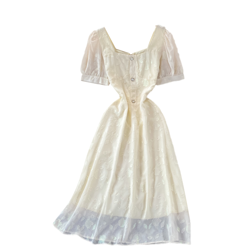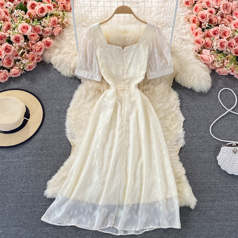 Cheap Dresses, Buy Quality Women’s Clothing Directly from China Suppliers:Summer New French Style Gentle Square Collar Dress Short Sleeve Slimming Slim Fit below the Knee White First Love Dress