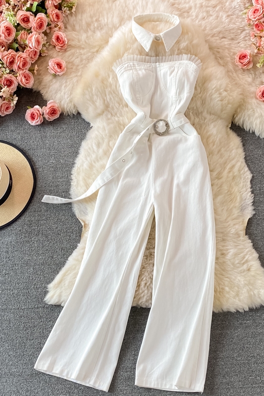 Off-the-Shoulder Tube Top Denim Jumpsuit Women’s Summer High Waist Slimming Draping Temperament Jumpsuit