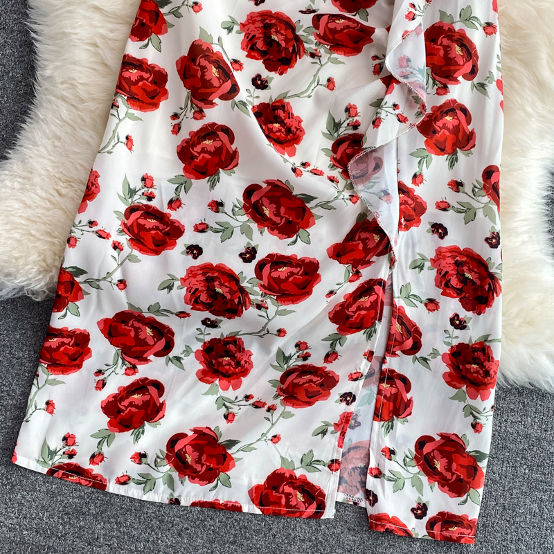 Cheap Dresses, Buy Quality Women’s Clothing Directly from China Suppliers:French Style Retro Kikyo Tea Dress Rose Dress Tight Waist Slimming Elegant Slightly Mature Style Split Floral Dress for Women