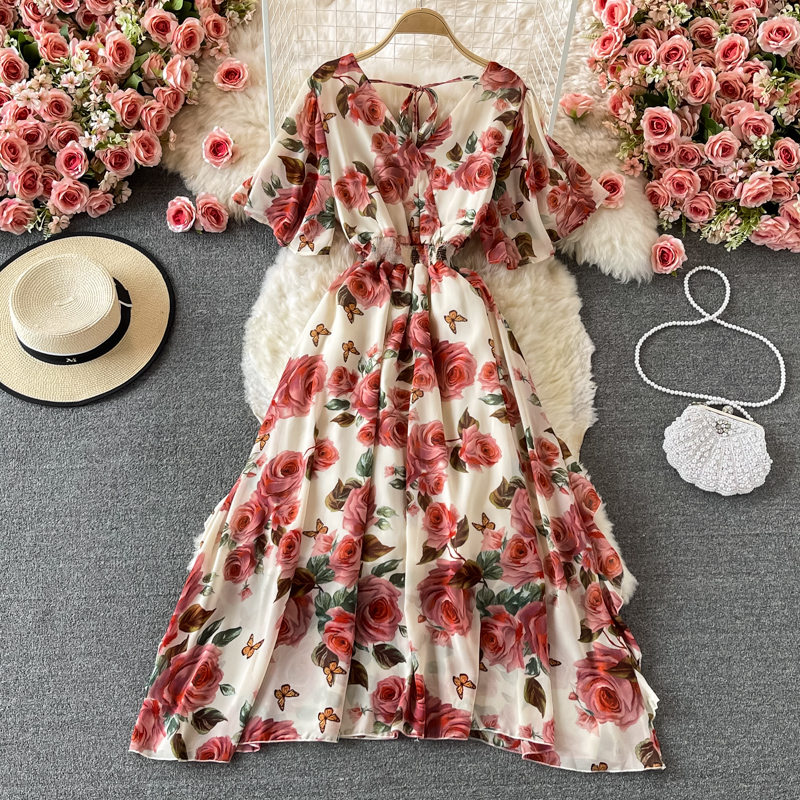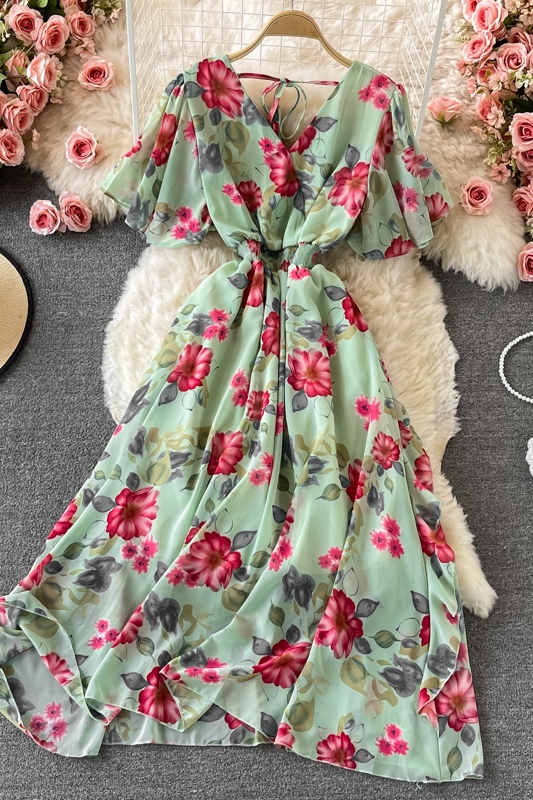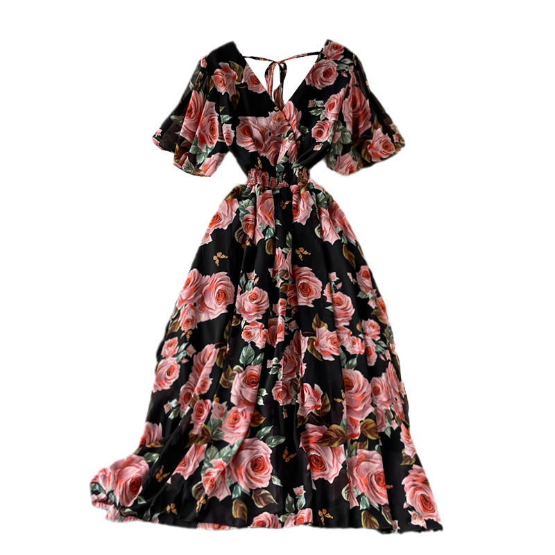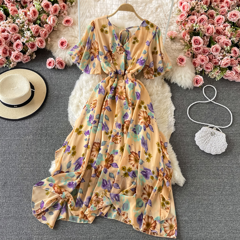 Cheap Dresses, Buy Quality Women’s Clothing Directly from China Suppliers:V neck Backless Chiffon Dress Summer Goddess Temperament Elegant Printed Seaside Holiday Large Swing Dress