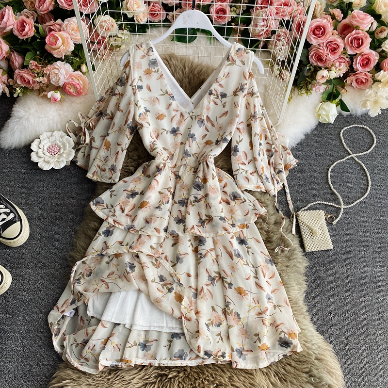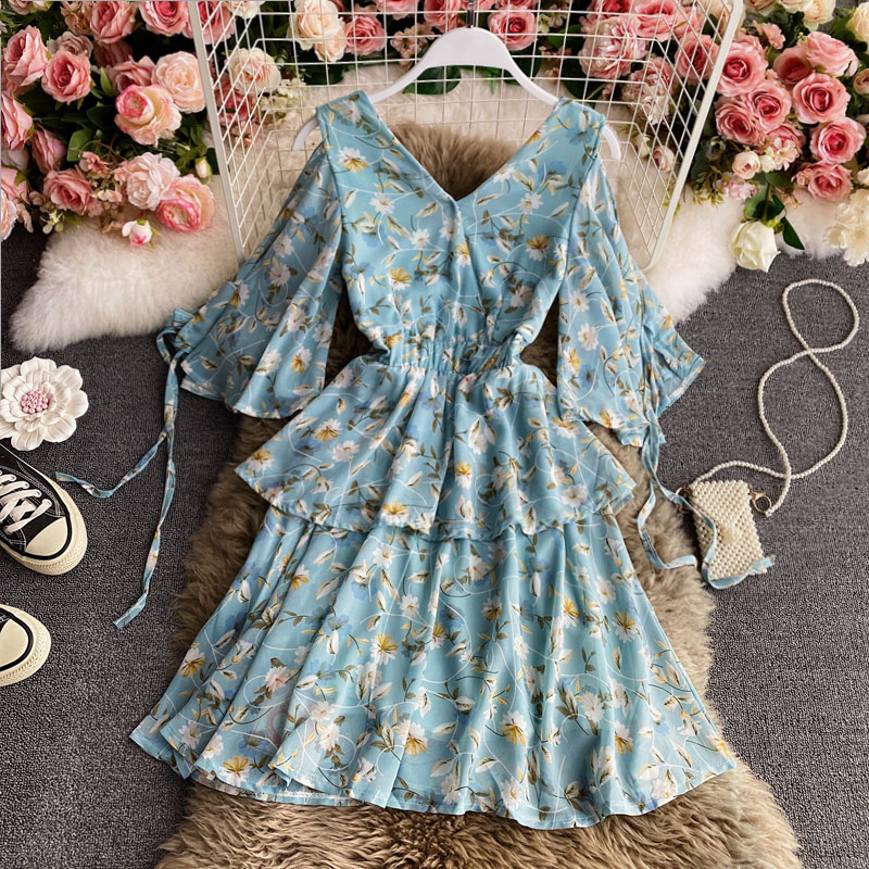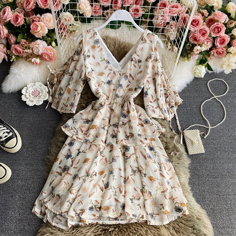 Cheap Dresses, Buy Quality Women’s Clothing Directly from China Suppliers:Beach Dress Women’s Seaside Holiday V neck Dress New Inspirational Backless Waist Slimming Chiffon Floral Dress
