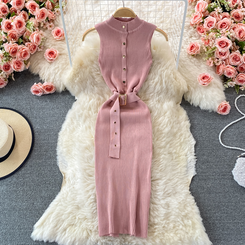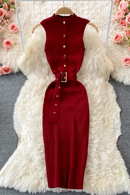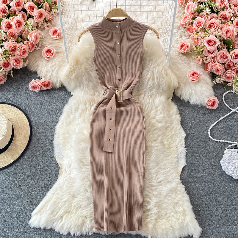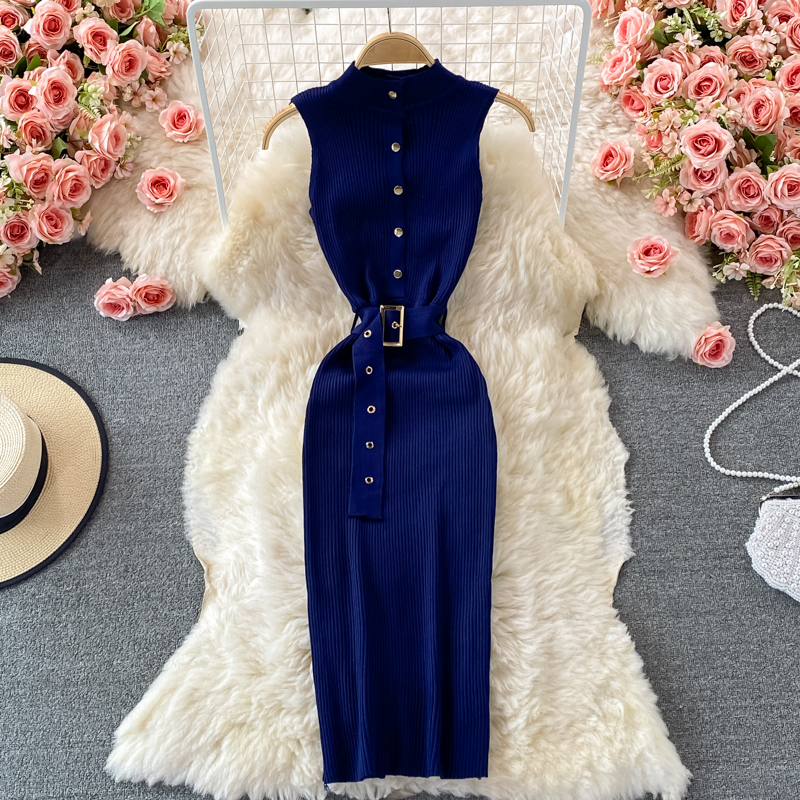 Cheap Dresses, Buy Quality Women’s Clothing Directly from China Suppliers:European and American stand up collar and buckle Slim waist elastic knitting waist thinner mid length bag hip bottoming skirt