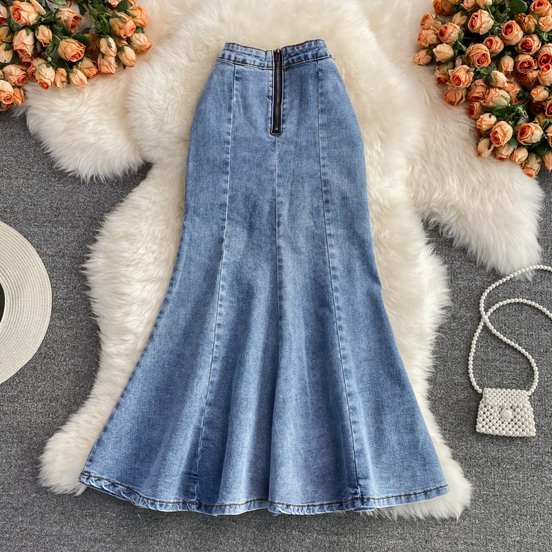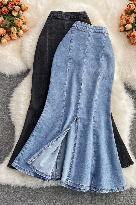 Cheap Skirts, Buy Quality Women’s Clothing Directly from China Suppliers:Denim High Waist Slit Skirt Women’s A line Skirt Ruffled Mid Length below the Knee Slim Fit Slimming Fishtail Hip Skirt