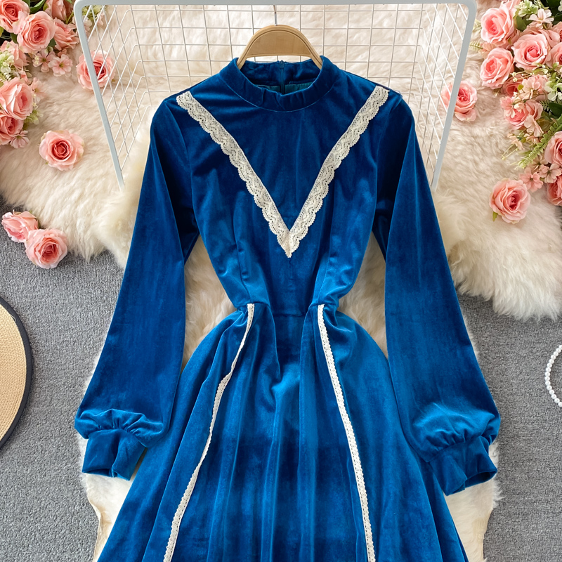 Cheap Dresses, Buy Quality Women’s Clothing Directly from China Suppliers:Retro tea break skirt autumn and winter French high end light luxury temperament was thin stand up collar velvet dress
