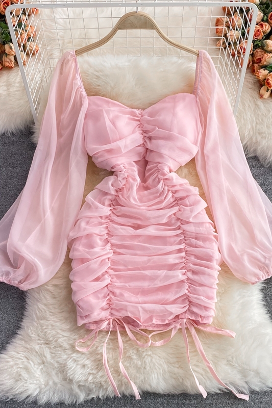 Cheap Dresses, Buy Quality Women’s Clothing Directly from China Suppliers:Fall New Pure Desire Temperament Slim Fit Slimming Square Collar Puff Sleeve Small Ruffle Hip Dress