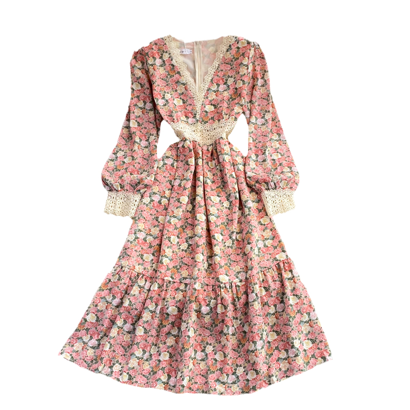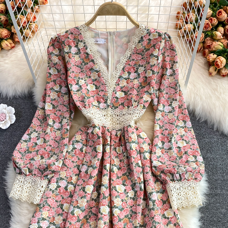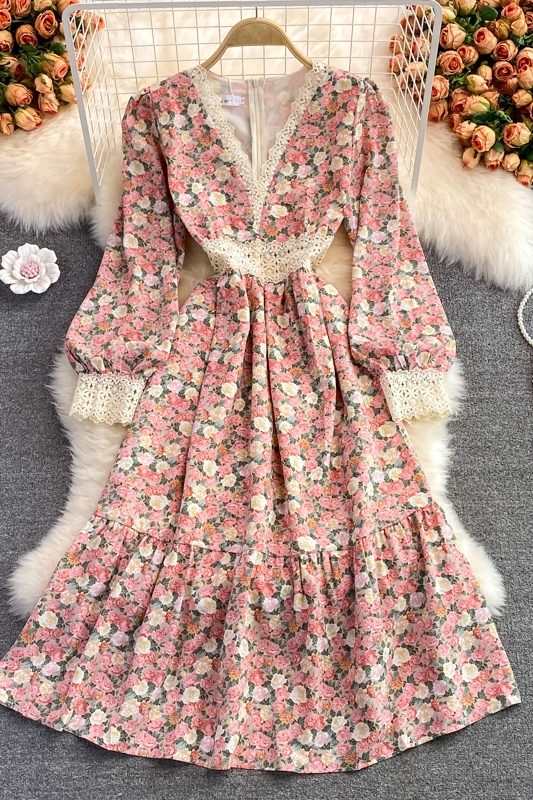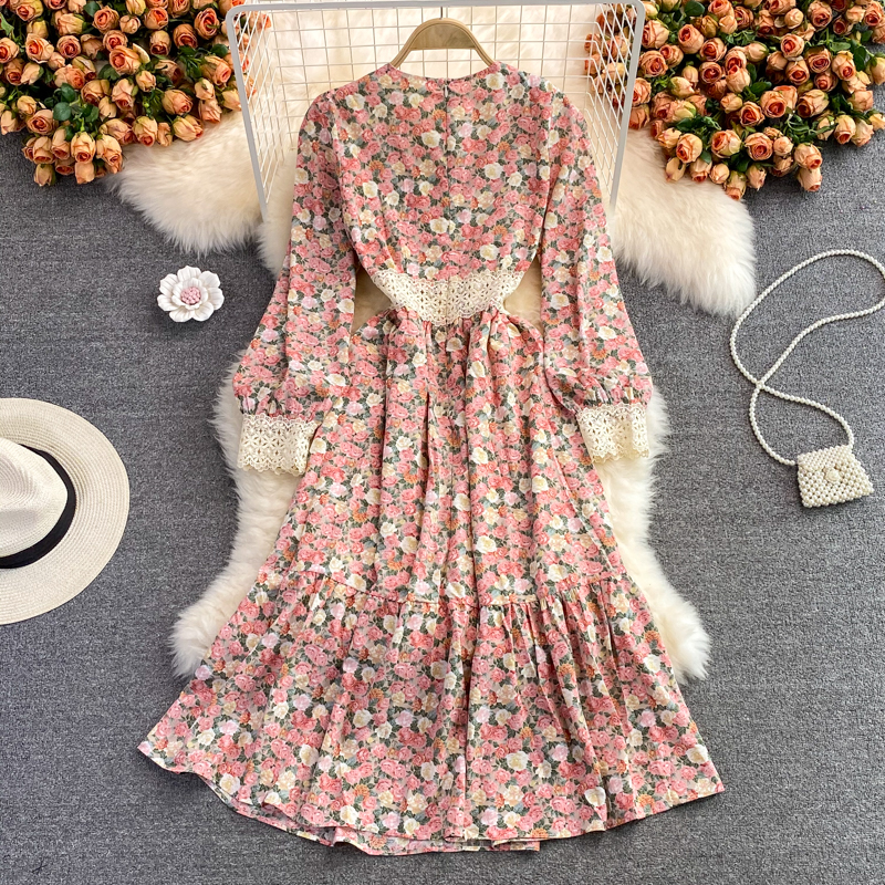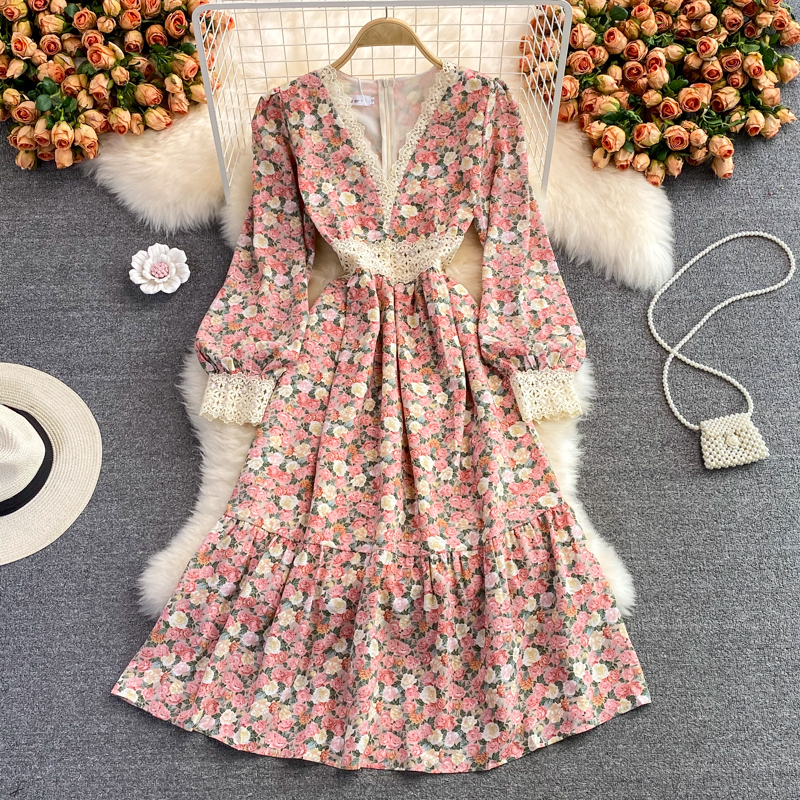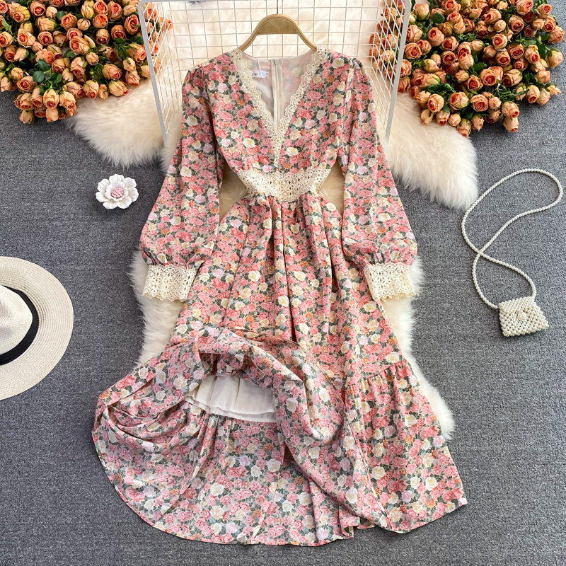 Cheap Dresses, Buy Quality Women’s Clothing Directly from China Suppliers:Lace Chiffon Patchwork Floral Dress Women's Autumn New Long Sleeve V neck Slimming French A line Large Hem Long Dress
