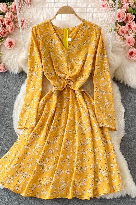 Cheap Dresses, Buy Quality Women’s Clothing Directly from China Suppliers:Fallnew French Style Vintage and Little Fresh Floral Skirt Waist Slimming Elegant V neck Chiffon Dress