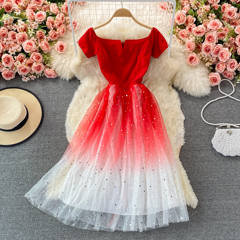 Cheap Dresses, Buy Quality Women’s Clothing Directly from China Suppliers:Super Fairy Starry Sky Gradient off the Shoulder Gown New Socialite Elegant Dress Slimming Mid Length Banquet Evening Dress
