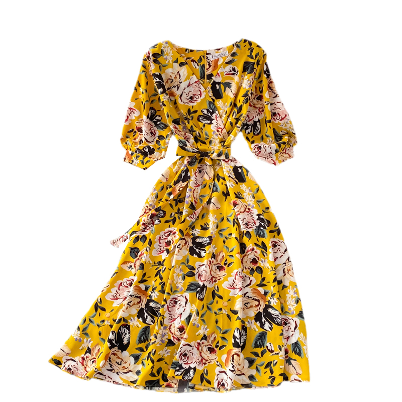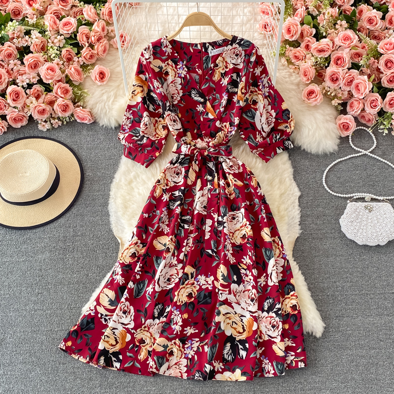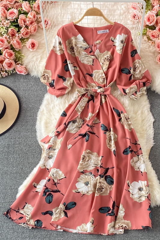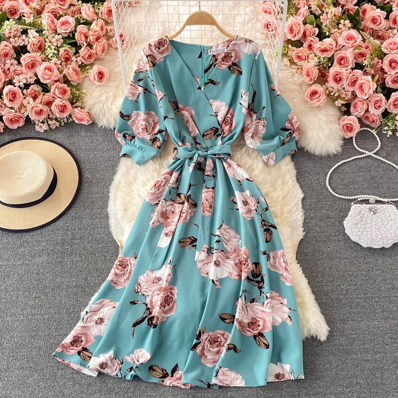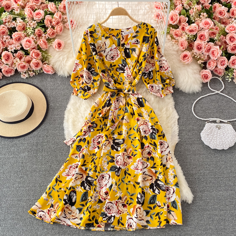 Cheap Dresses, Buy Quality Women’s Clothing Directly from China Suppliers:V neck floral dress female summer new style loose cover belly Yujie style over the knee a line big dress