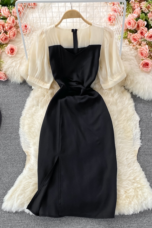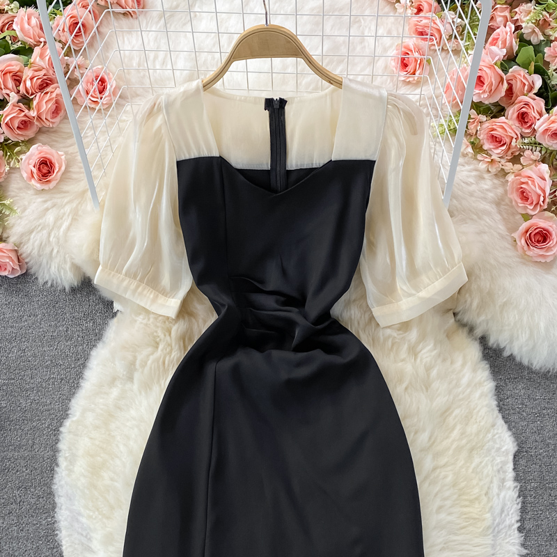 Cheap Dresses, Buy Quality Women’s Clothing Directly from China Suppliers:Fallretro Slimming Temperament Long Sleeve Fairy Skirt Super Mori Split Color Matching Square Collar Dress