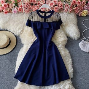 Socialite Temperament Small Size Dress Dress Summer New Scheming Sheer Mesh Patchwork A- line Skirt Dress