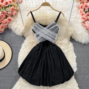 Western Style Small Sweet Mesh Stitching Princess Pettiskirt High Waist Hepburn Style Dress Temperament Small Black Skirt Summer