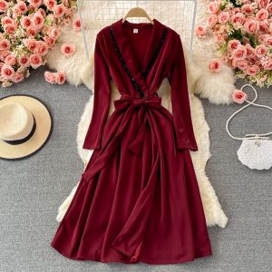 Fashion windbreaker women's mid-length over-the-knee V-neck dress for autumn
